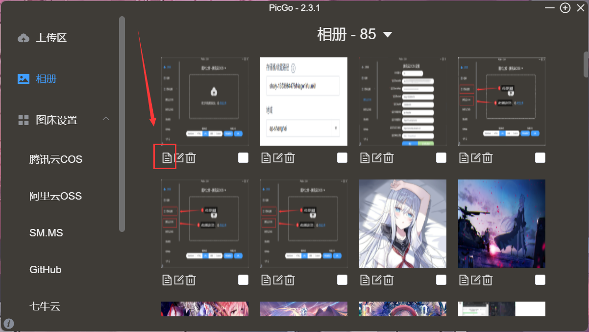 注意,在 PicGo 相册中的删除操作仅会 移除 PicGo 相册中的记录,并不会删除 CDN 上的实际文件,若需彻底删除,请前往 CDN 后台操作。