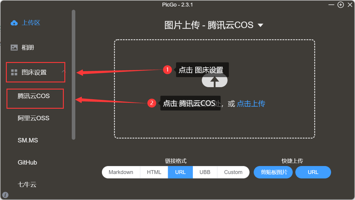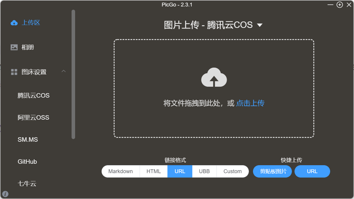 依次点击 图床设置 $\rightarrow $ 腾讯云COS ,可以看到如下页面: